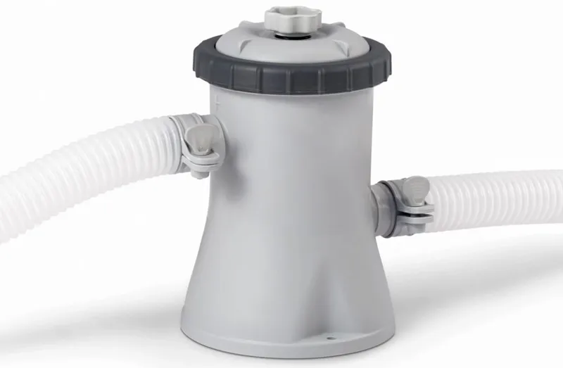 Het bad wordt als één pakket geleverd met zwembadpomp. Het is dus niet mogelijk om dit zwembad zonder pomp te bestellen. De filterpomp die wordt meegeleverd heeft een pompcapaciteit van 1250 liter per uur. In ongeveer 4-6 uur heeft de pomp het bad volledig rondgepompt. Denk eraan om iedere twee weken je filter te vervangen. De filtercartridge die je nodig hebt voor de Intex filterpomp van 1250 liter/uur is